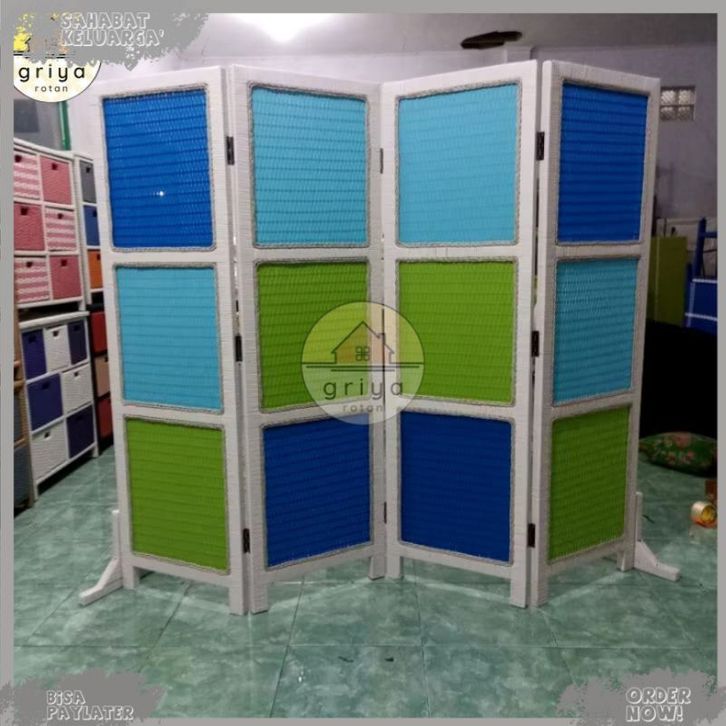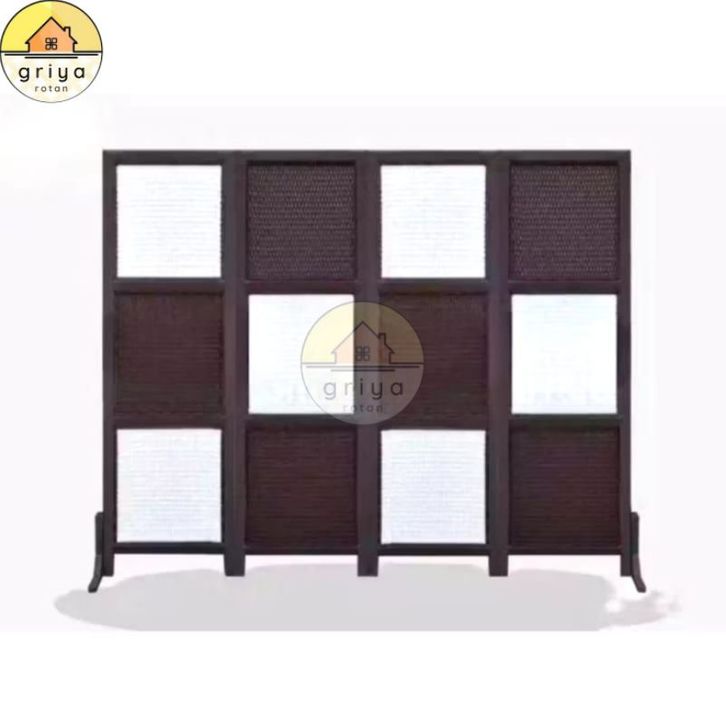 Sketsel Ruangan Rotan Sintetis 4 Panel Kotak Kotak