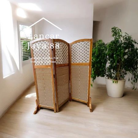 Sketsel Ruangan Rotan Sintetis 3 Pintu Cokelat Natural Tinggi 170 Cm
