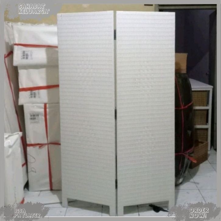 Sketsel Ruangan Penyekat Ruangan Rotan Sintetis Warna Putih Polos