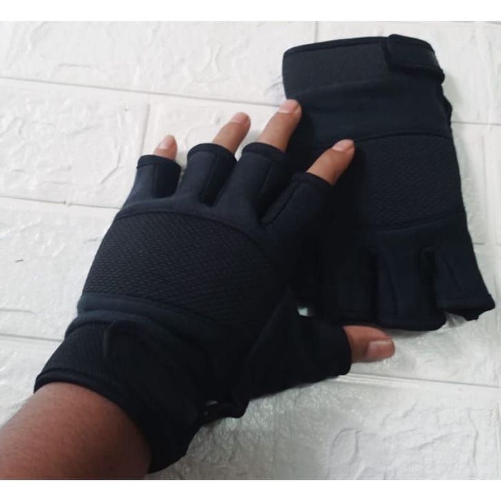 Sarung Tangan Motor Polos Untuk Pria Model Separoh Jari/Sarung Tangan Sepeda
