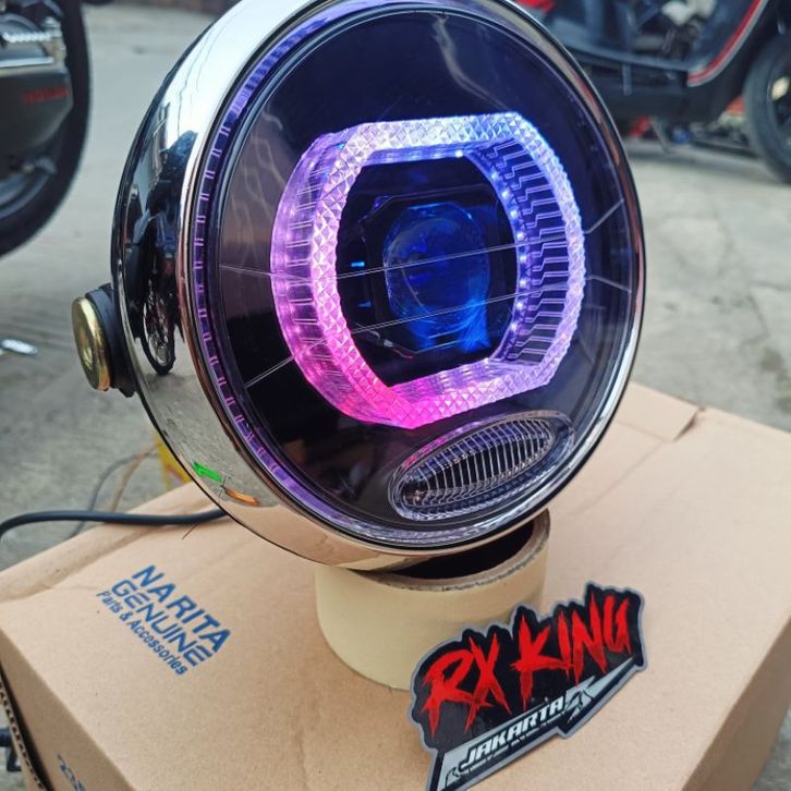 TERLARIS LAMPU DEPAN RXKING NEW BULAT SCORPIO VIXION OLD BILLED 4.5INC CRISTAL RGB APLIKASI 55WATTT
