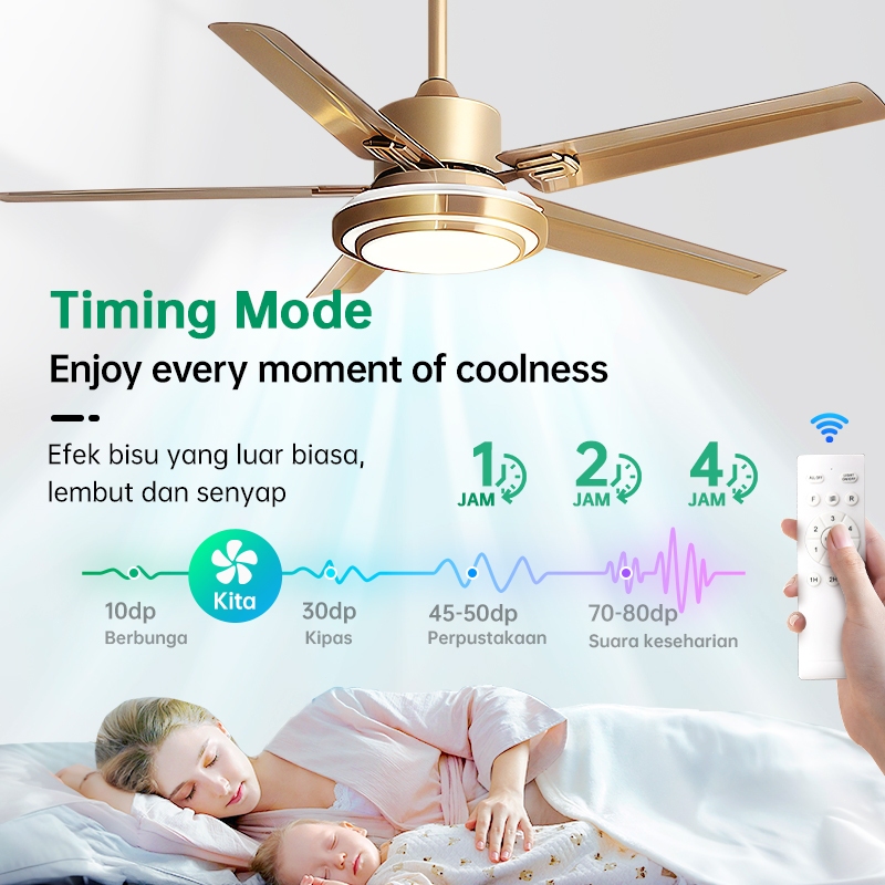 Lampu kipas angin plafon LED 2in1 3 warna 6 kecepatan 42/48/52 inci kipas angin gantung plafon dengan lampu meja