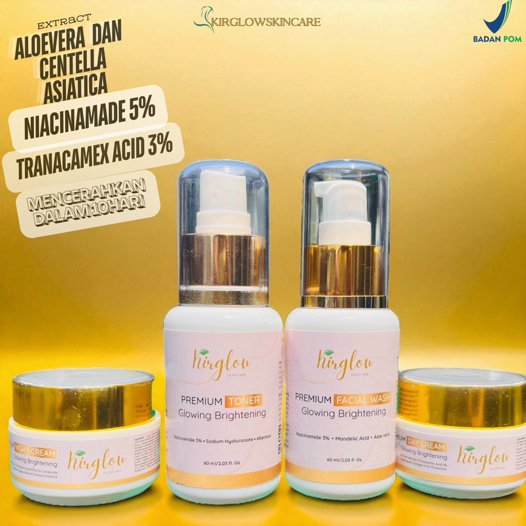Skincare KIRGLOW paket premium glowing brightening untuk mengatasi plek hitam dan membuat kulit glowing