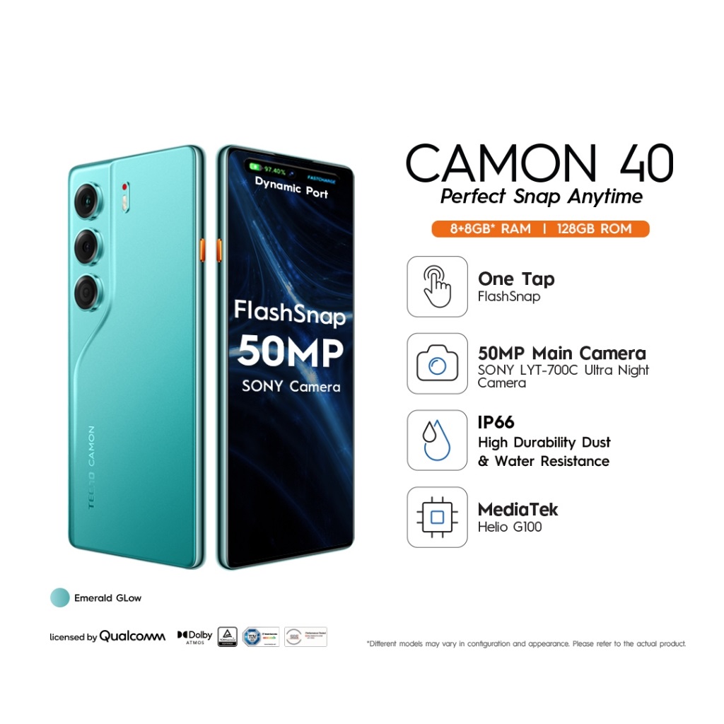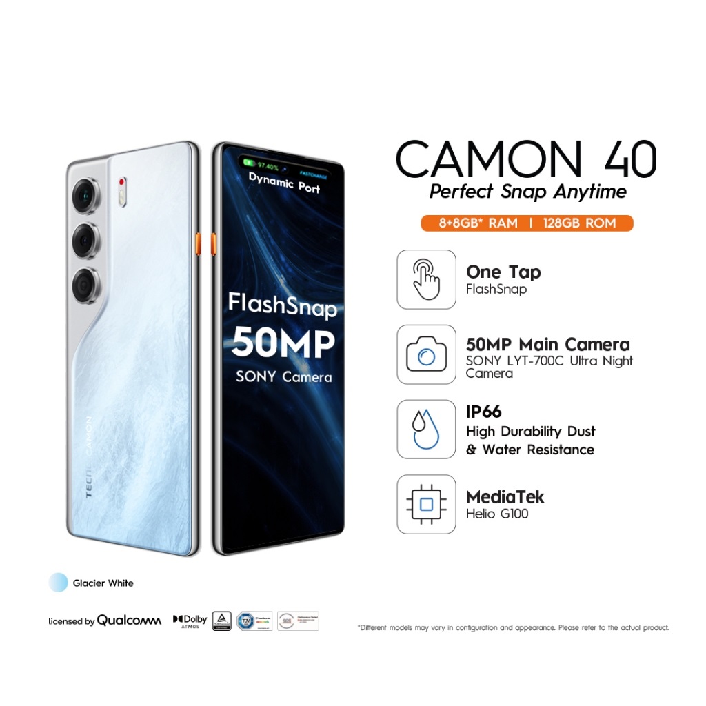 TECNO CAMON 40 8+8GB 128 GB, 50MP Sony + 8MP Ultra Wide Camera, 32MP Front Camera, 120hz AMOLED, IP66, 5200mAh, 45W[FLAS