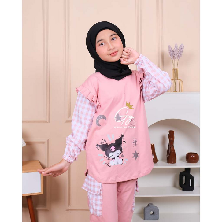 One Set Anak Perempuan KUROMI Setelan Anak Perempuan Lengan Panjang 1-12 Tahun Katun Combed