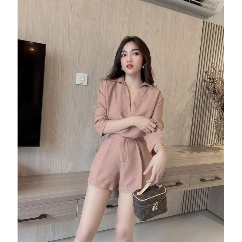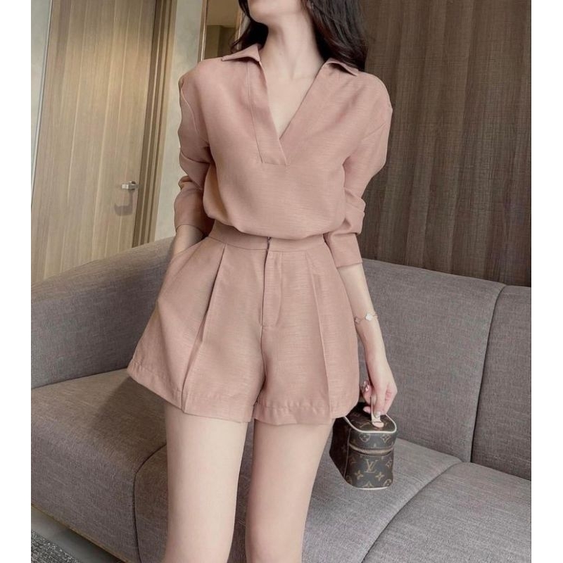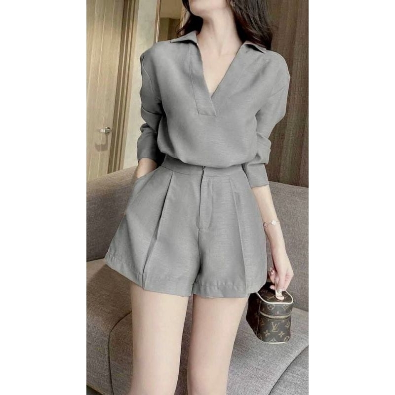 Elissa One Set Kekinian - Setelan Atasan Hotpants Wanita - Outfyt Korean Style