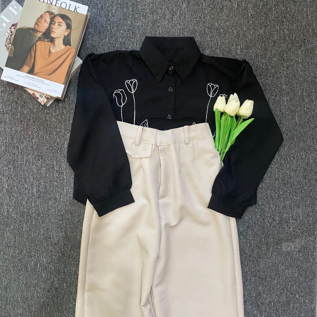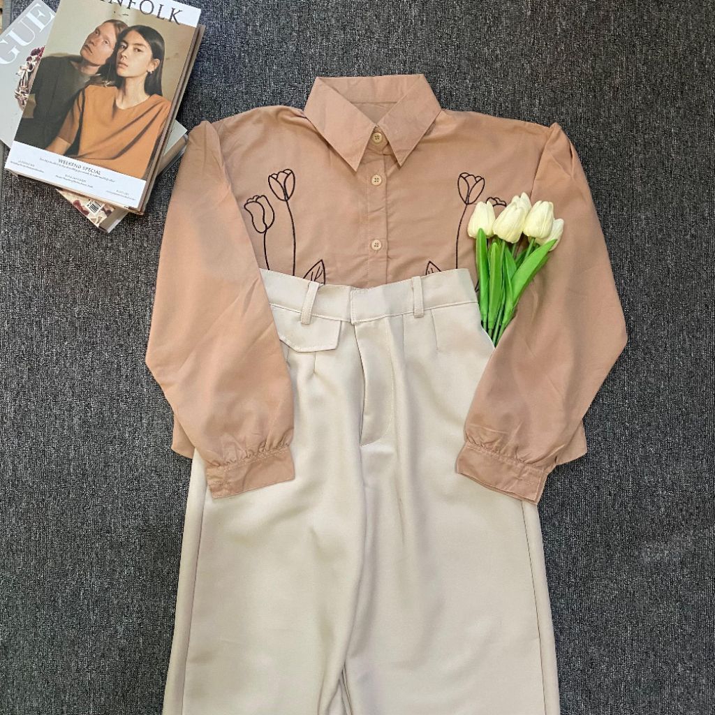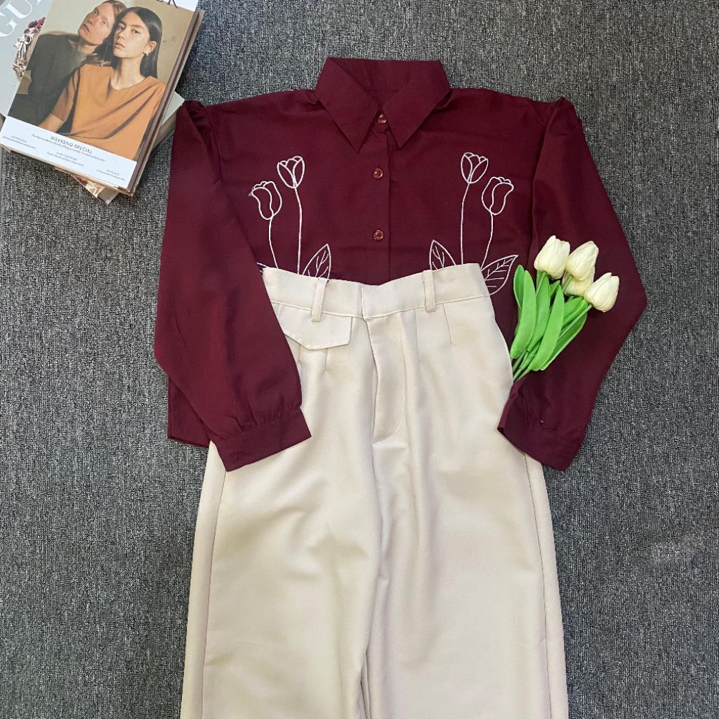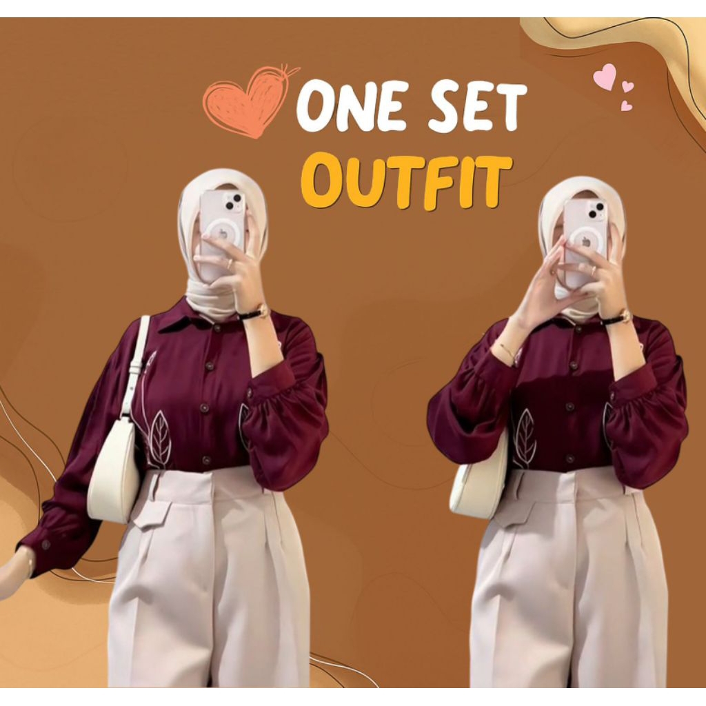 One Set Wanita / Kemeja Crop + Oro Pants Haighwaist / Setelan Wanita / Setelan Wanita Kekinian / Ootd Wanita Set / Baju