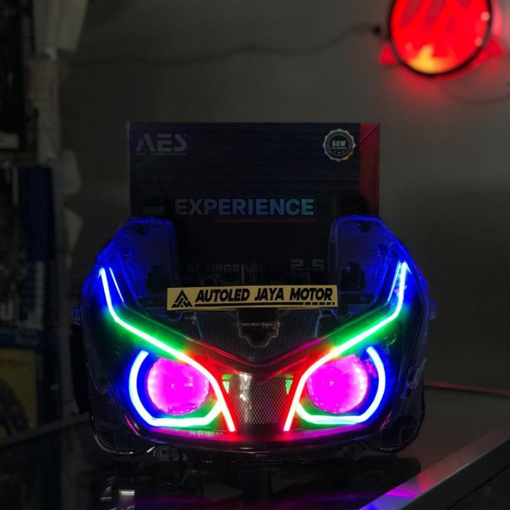 TERLARIS PROJIE PROJECTOR BILED YAMAHA LEXI 155 PROJECTOR DOUBLE BILED AES TURBO EXSPERIENCE 60 WATT LENGKAP ALIS RGB SM