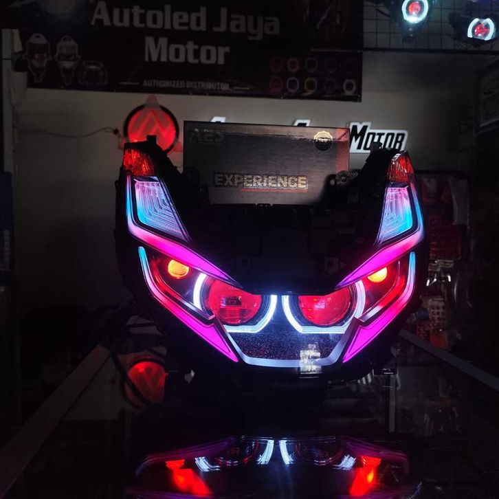 TERLARIS REFLEKTOR BILED HONDA PCX 160 ( BILED AES EXSPERIENCE 60 WATT ) ALIS & DEVIL RGB SMARTPHONE
