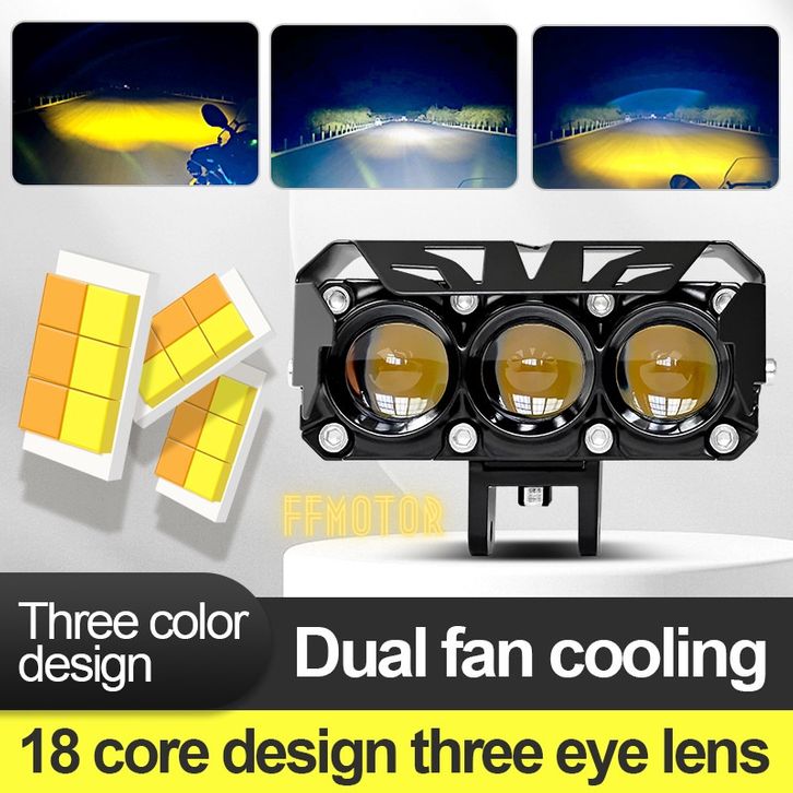 TERLARIS LAMPU TEMBAK SOROT SQL 3 MATA 3 LED LASER GUN KIPAS HI LOW 2 PCS HIGH PUTIH LOW KUNING