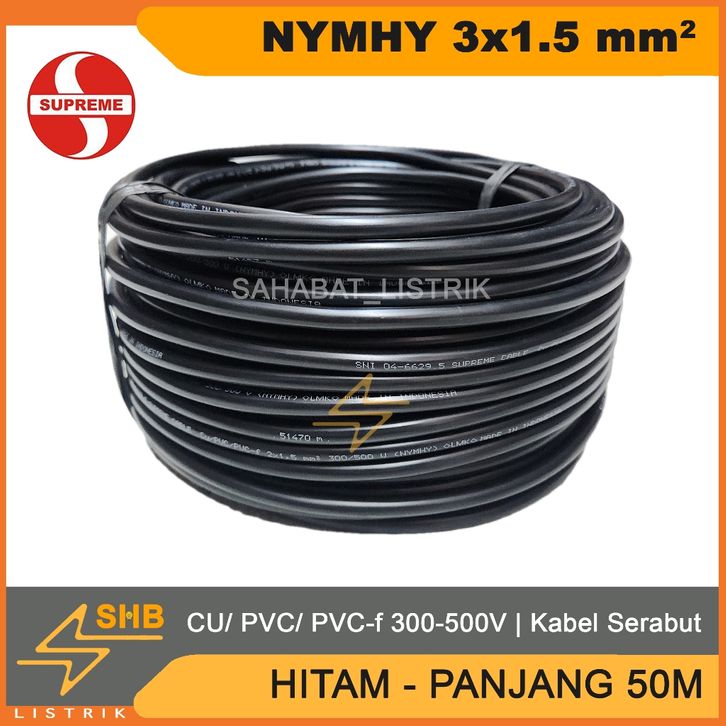 KABEL SERABUT SUPREME NYMHY/NYYHY 3X1.5 HITAM - PUTIH 50M