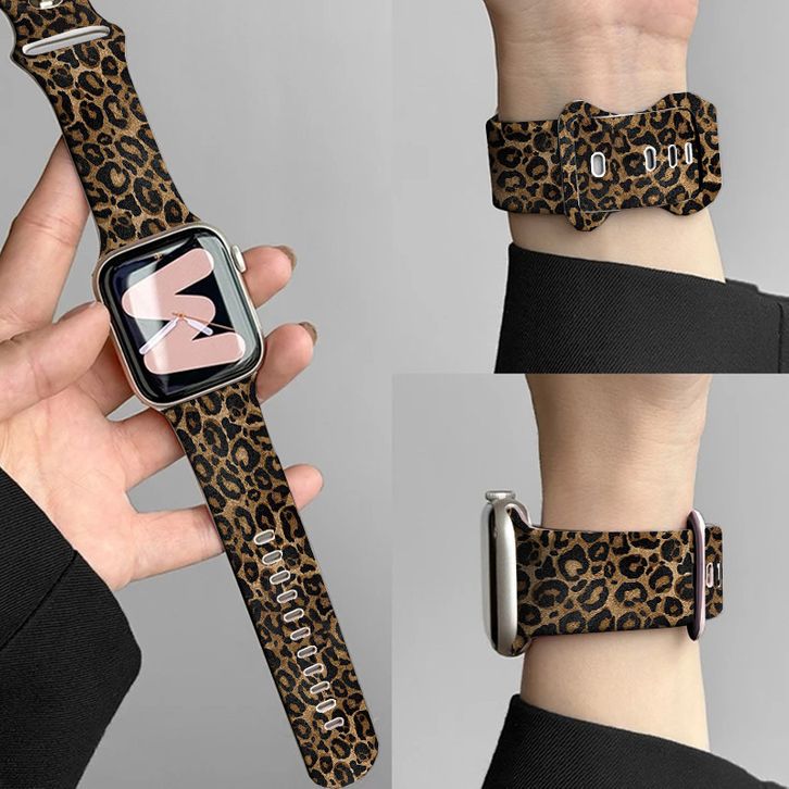 TERBARU Tali Strap Gelang Soft Silikon Kepribadian cetak macan tutul Untuk iWatch Apple Watch 1