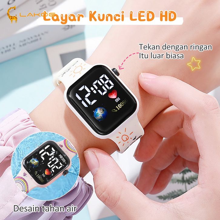 TERBARU LAKOEOFFICIALMALL Jam Tangan Digital Anak LED Anti Air Screen Strap Kartun Lucu