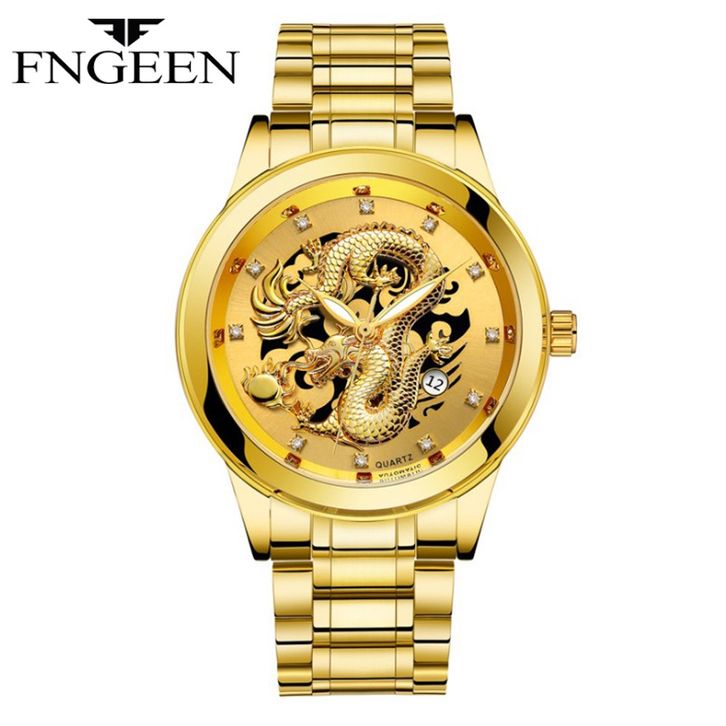 TERBARU HOLEK Jam Tangan Pria Naga Emas Luxury Stainless Steel Quartz Original Anti Air Dragon Gold