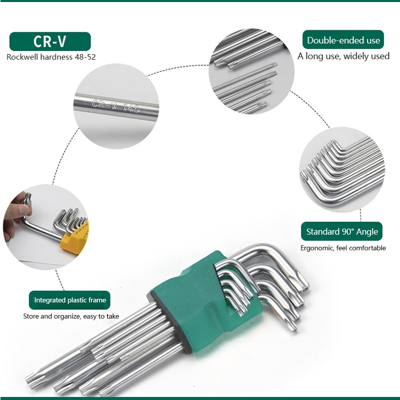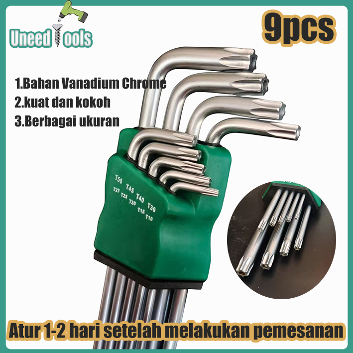 UneedTools kunci L BINTANG set original 9pcs kunci l panjang set panjang pendek hex torx wrench set Bahan Vanadium Chrome
