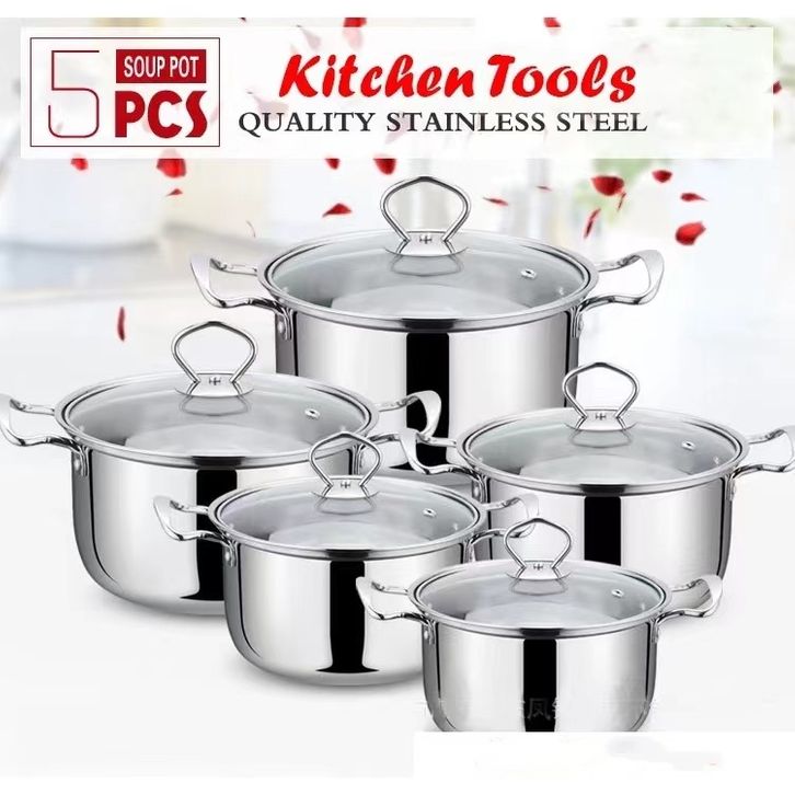 Panci Set Anti Lengket Panci dan Steamer Set Stainless Tebal 12Pcs Panci 1 Set Lengkap