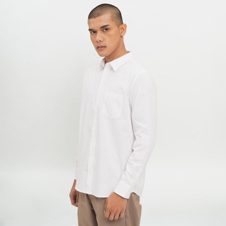 M231 Kemeja Pria Basic Polos Panjang Putih 1468A