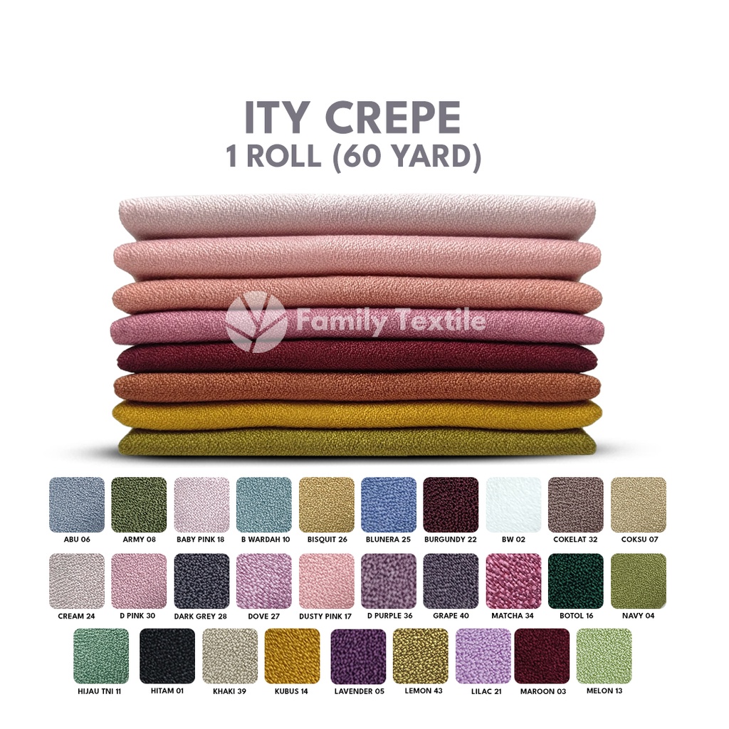 Bahan Kain ITY Crepe 1 Roll 60 Yard - Bahan Gamis Lembut