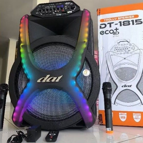 Speaker aktif portable 18 inch Jumbo DT1815 ECO+ Free 2 microphone wireless aktiv Exrabass dt 1815