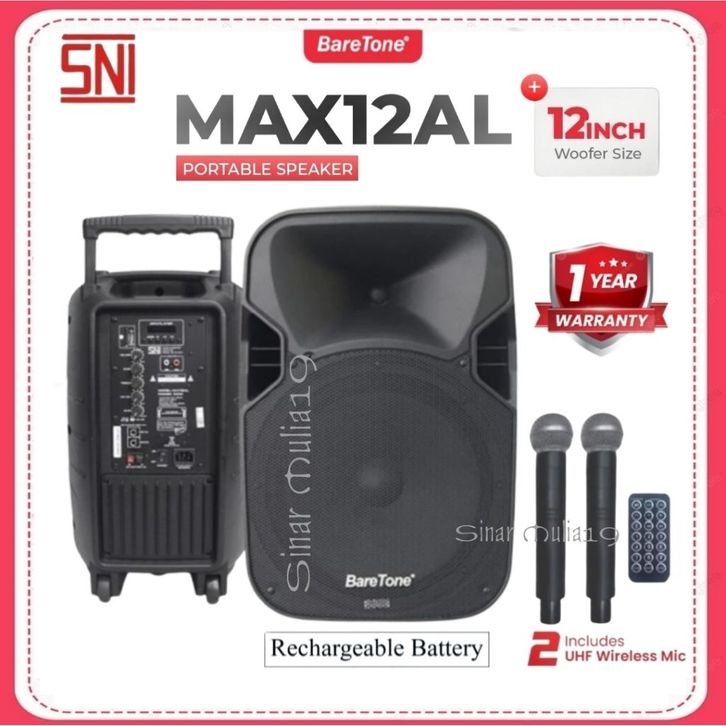 Speaker Active Portable Meeting Wireless 12 Inch BareTone MAX12AL / MAX-12AL Bluetooth ORIGINAL [ 2 Mic wireless ]