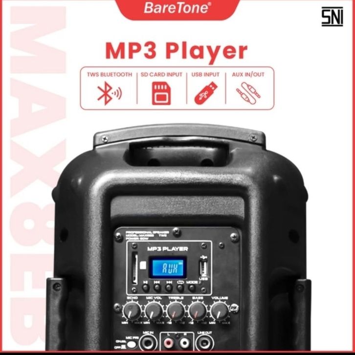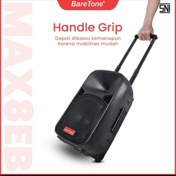 BareTone MAX8EB Speaker Portable Aktif 8 Inch Terbaik MAX08EB Bluetooth TWS [ 2 mic wireless ]