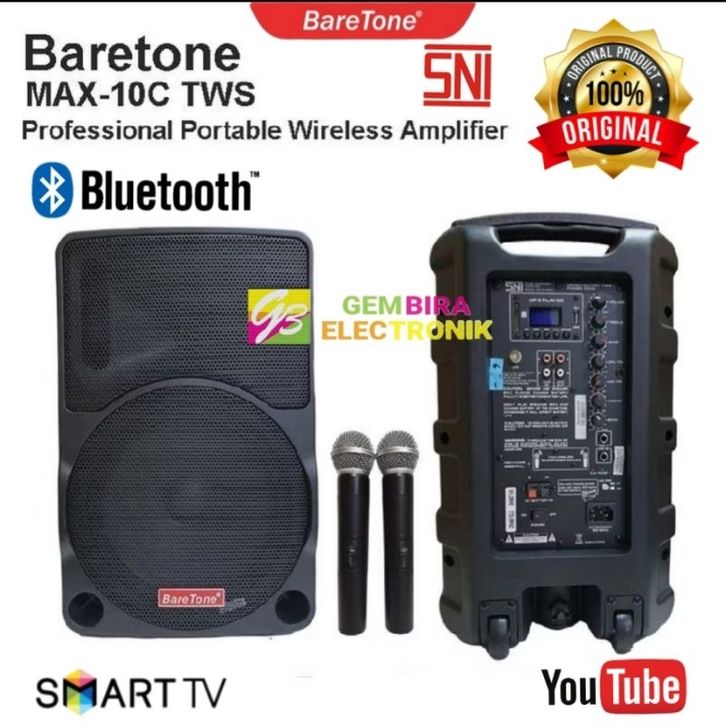 Speaker Aktif Portable Karaoke Bluetooth Baretone 10 inch max10c Tws Bluetooth Original