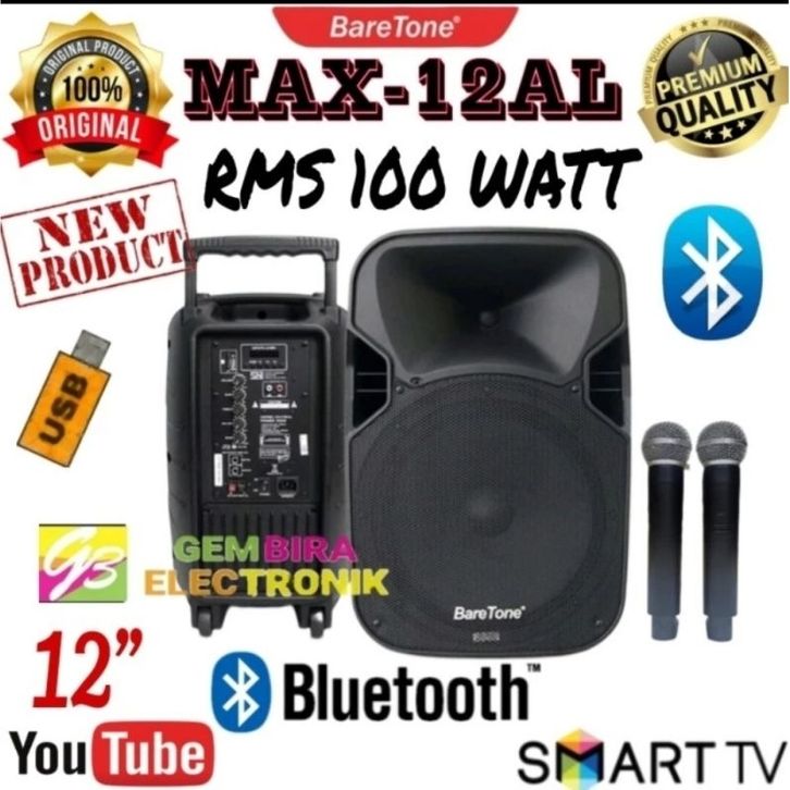 SPEAKER AKTIF PORTABLE BARETONE 12 INCH ORIGINAL SOUND MAX12AL BLUETOOTH