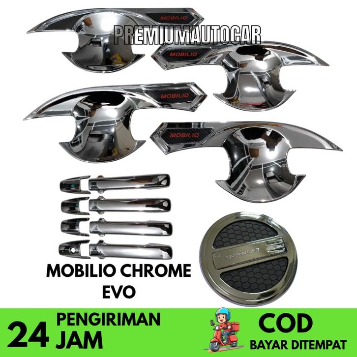 Paket Lengkap Handle Outer Tank Cover Mobilio Hitam Chrome
