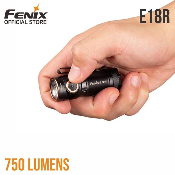 Fenix Senter Mini Led E18R Rechargeable Flashlight Terang 750 Lumens - Black