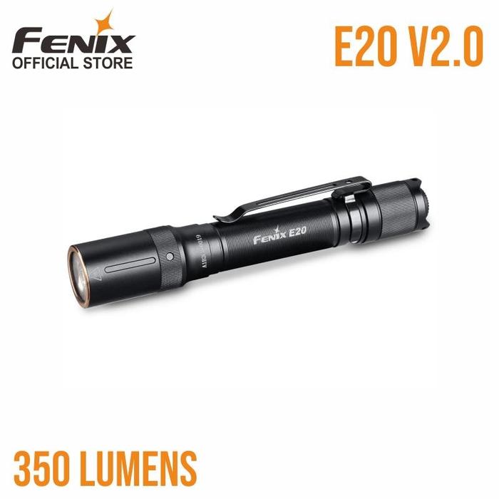 Fenix Senter Led E20 V2.0 Flashlight Terang 350 Lumens - Black