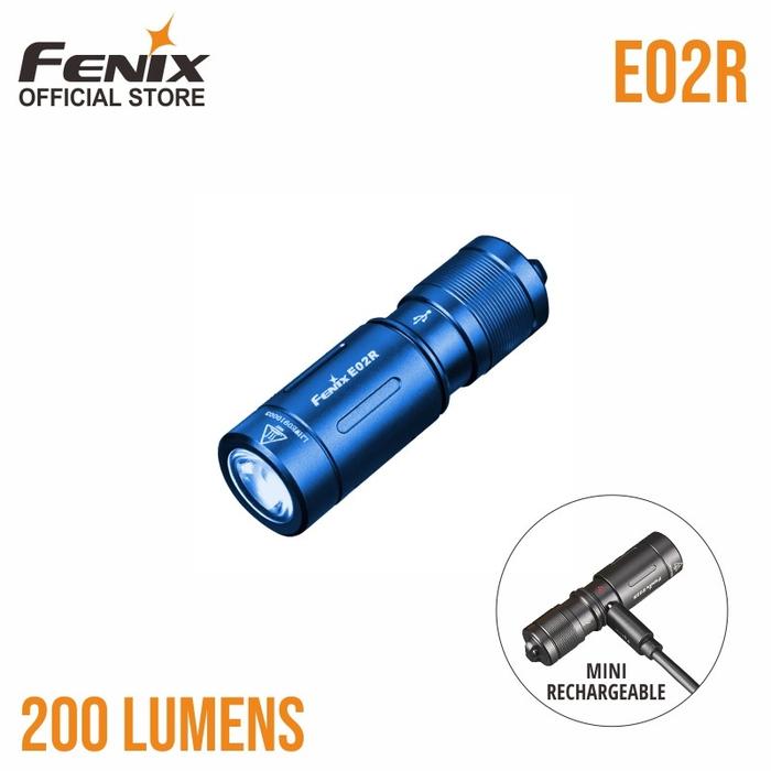 Fenix Senter Mini Led E02R Blue Rechargeable Flashlight Terang 200 Lumens - Blue