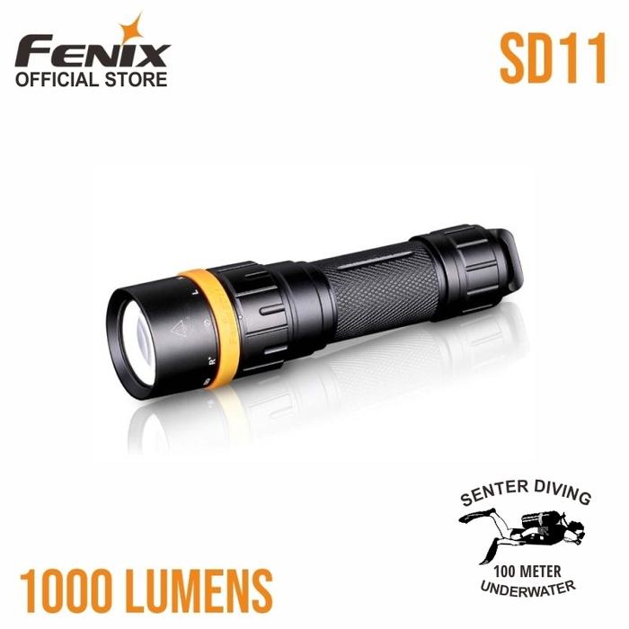 Fenix Senter Selam Led SD11 Diving Flashlight Underwater 100m Terang 1000 Lumens - Black