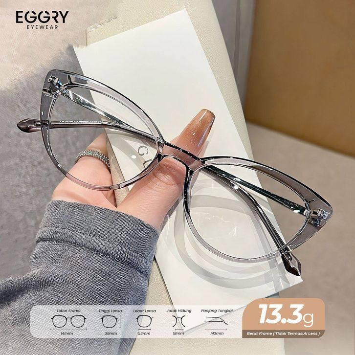 Eggry Eyewear Kacamata Cat Eye Photocromic Minus Lensa Anti Radiasi Anti Blueray Fashion Pria Wanita Terbaru Material