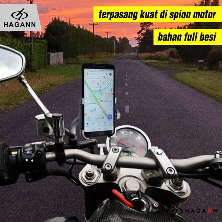 Holder - Hagann Sho-1001 Holder Hp Motor Besi | Phone Stand Tempat Di Spion | Dudukan Handphone Untuk Motor – Gar