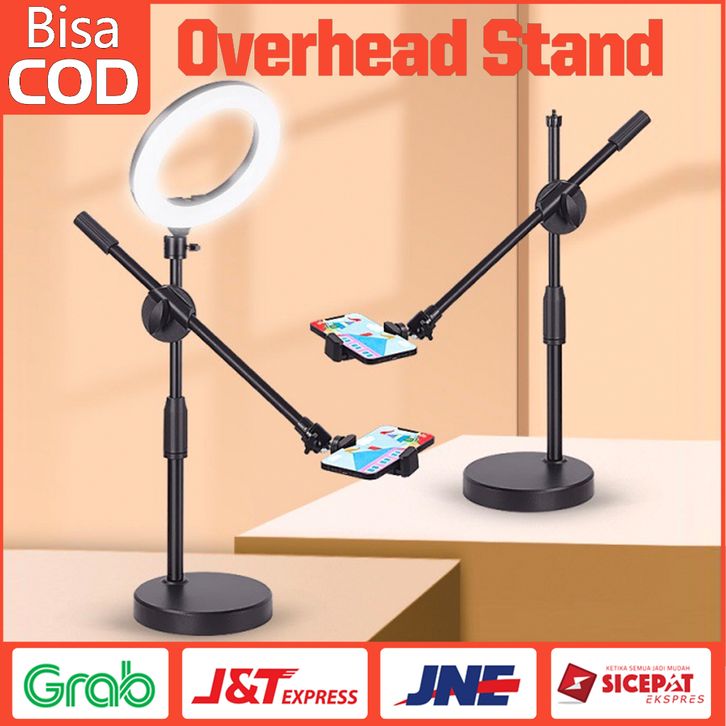 Gratis Ongkir - Overhead Phone Stand + Led Lampu 10inch Stand Holder Phone Holder Bracket 360° Lampu Fotografi