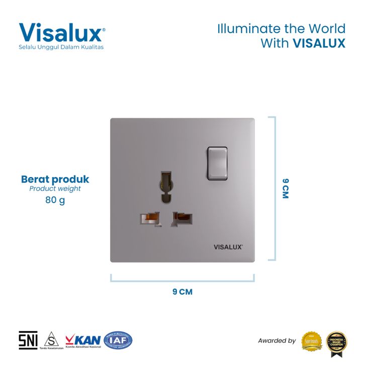Gratis Ongkir - Visalux Stop Kontak Decor Series (13a) - 1g Multi Dark Grey / Stop Kontak Premium (Vsd1013m-dg)