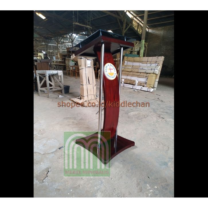 Promo Podium Stainless Kayu Jati Lengkung Minimalis Kombinasi Kaca dengan Model Stainless Lurus