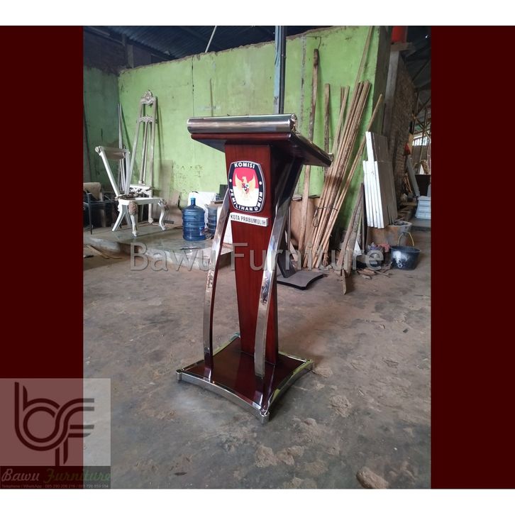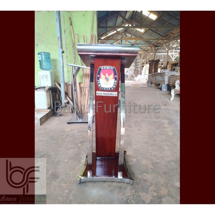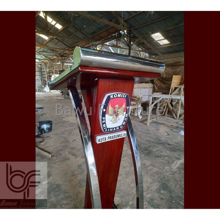 Podium Minimalis Stainless Produk Unggulan Mewah Logo Pemerintahan KPU Prabumulih Unit Banyak Stock