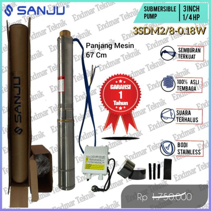 SANJU 3SDM2/8-0.18W Pompa Satelit Submersible Pump 3 Inch 1/4 Hp 0.25 Pk 180 Watt