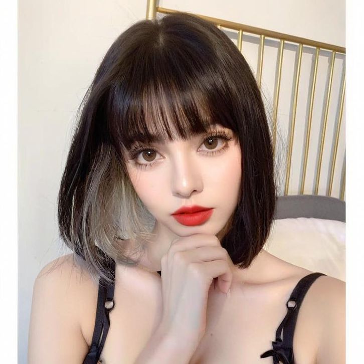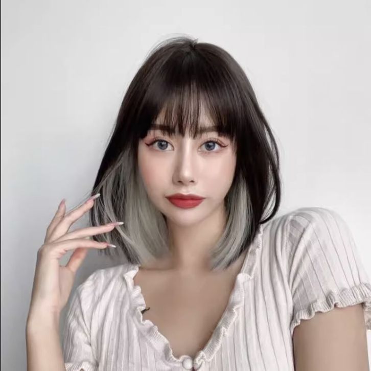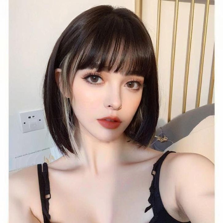 Wig Korean Style Bobo Lisa Rambut Pendek Wanita, Wig Rambut Asli Pendek,Rambut Palsu Wanita Full Kepala, Rambut Palsu