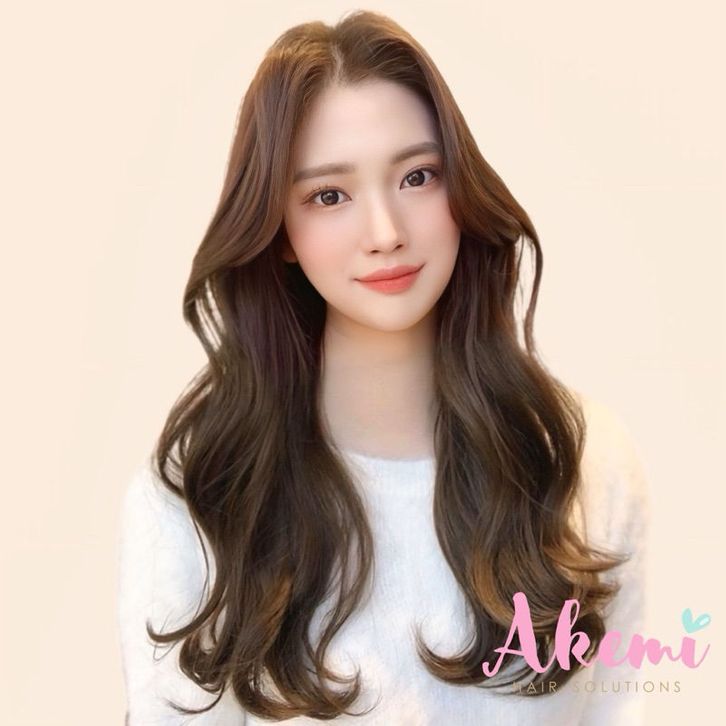 Lace Front Wig Akemi - Curtain Bangs Wavy 60Cm Rambut Palsu Wanita Panjang Bergelombang Wig Natural Wave