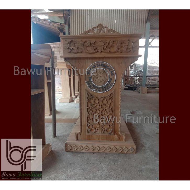 Mimbar Masjid Kayu Jati Ukir Bunga Desain Cantik Gaya Klasik Mewah Mimbar Podium Ukir Jepara
