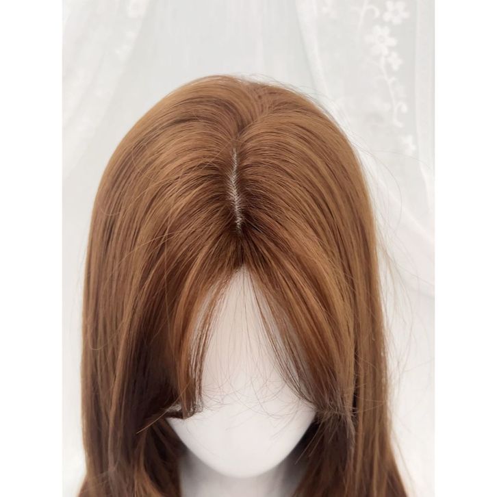 Wig Tanpa Poni Oranye Coklat Rambut Palsu Wanita Full Kepala Mid-Terpisah Dopamin Dopamin Oranye Coklat Tinggi Level