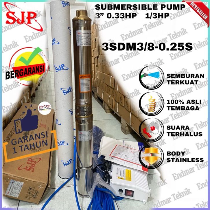 SJP Submersible Pump 3 inch 1/3PK 0.33HP 250 watt Kabel ±30 Meter Sudah Tersambung dari pabrik langsung