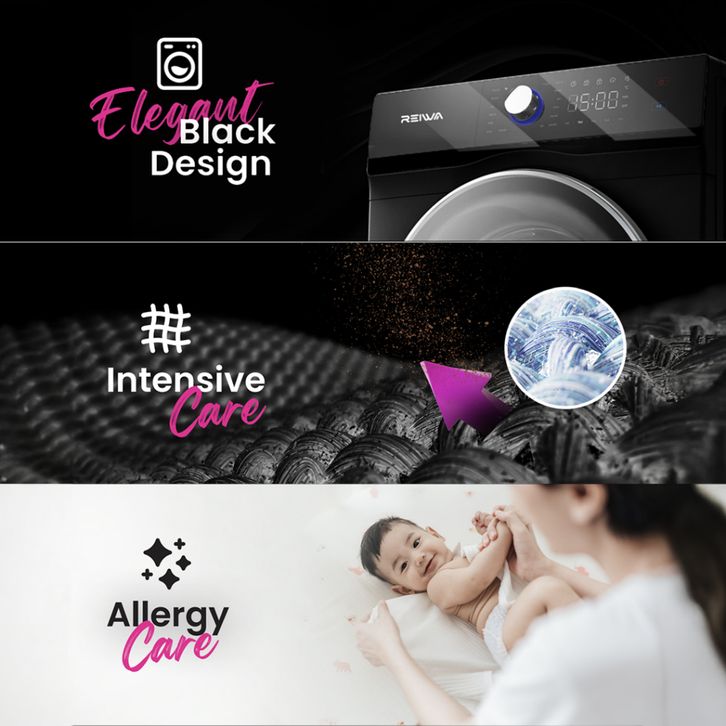 Reiwa Mesin Cuci 1 Tabung Front Loading 8kg WF-0824PBK Phantom Black