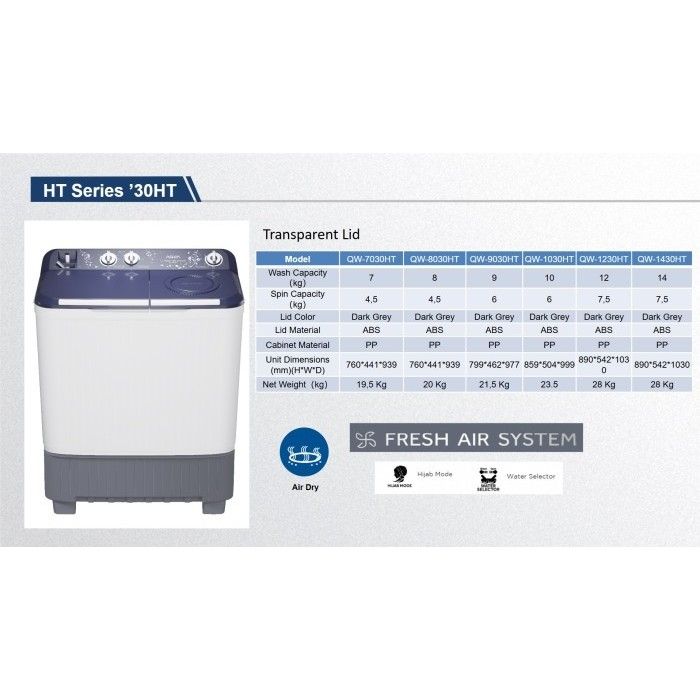 Mesin Cuci AQUA 2 Tabung 12 KG QW-1230HT