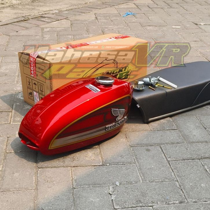 TANGKI SETT CB PRESS/ TANGKI MERAH GRAFIS SET KRAN BENSIN TIGER/ SET TUTUP TANGKI BULAT/ SET JOK DOWSIZE 9CM/ TANGKI FUL