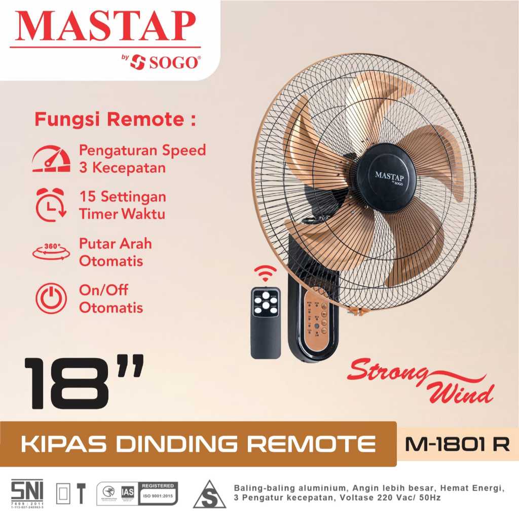 Kipas Angin Dinding MASTAP M-1801 R 18 inch Baling Aluminium Remote Mewah Murah Terlaris