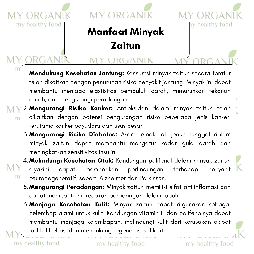My Organik 1 liter EVOO Extra Virgin Olive Oil Minyak Zaitun Murni