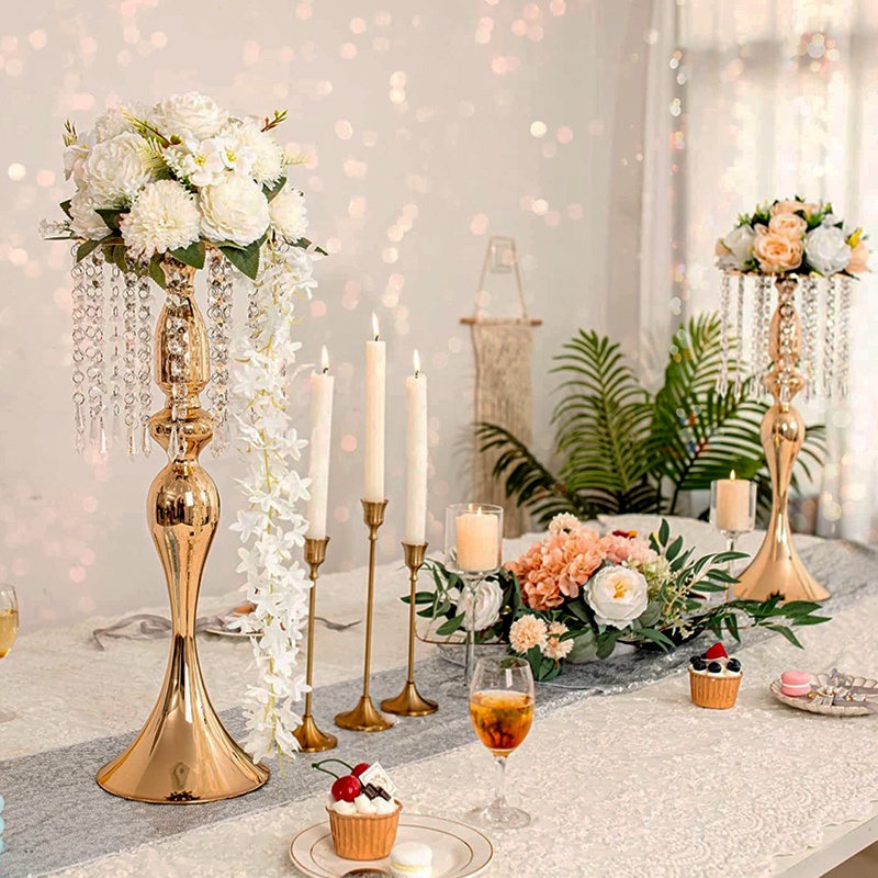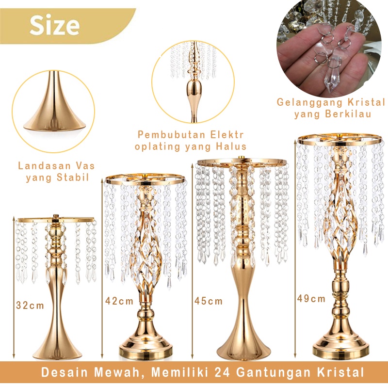 Vas bunga hiasan dekorasi ruang tamu mewah pajangan lemari kaca luxurious wedding vase decoration dengan tetesan kristal